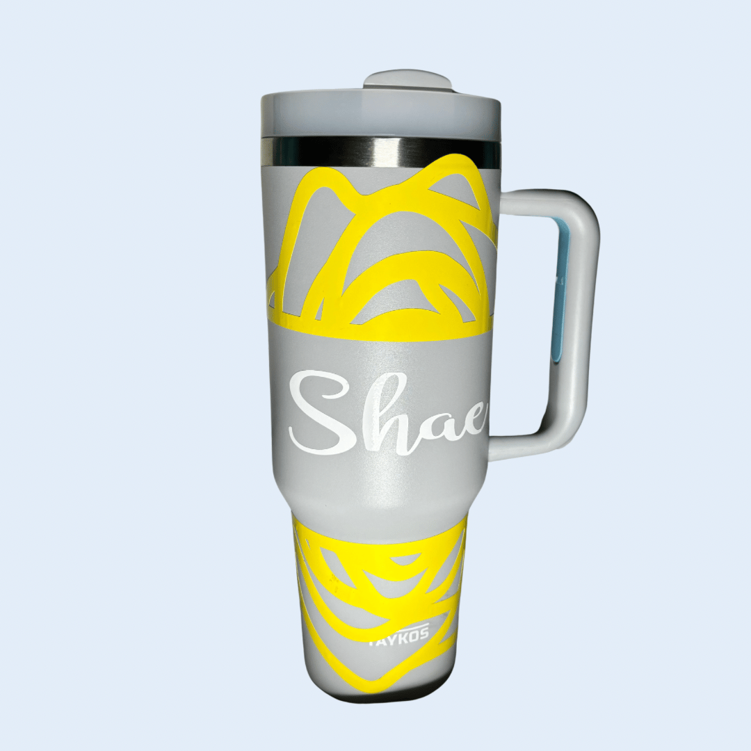 Start your morning or wind down your night with your favorite beverage in our custom cups! Personalize yours with a phrase or design of your choice, beautifully applied in vinyl.